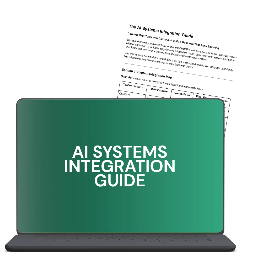 BONUS #3: The AI Systems Integration Guide - A simple roadmap for connecting ChatGPT, autoresponders, and CRMs without tech overwhelm.