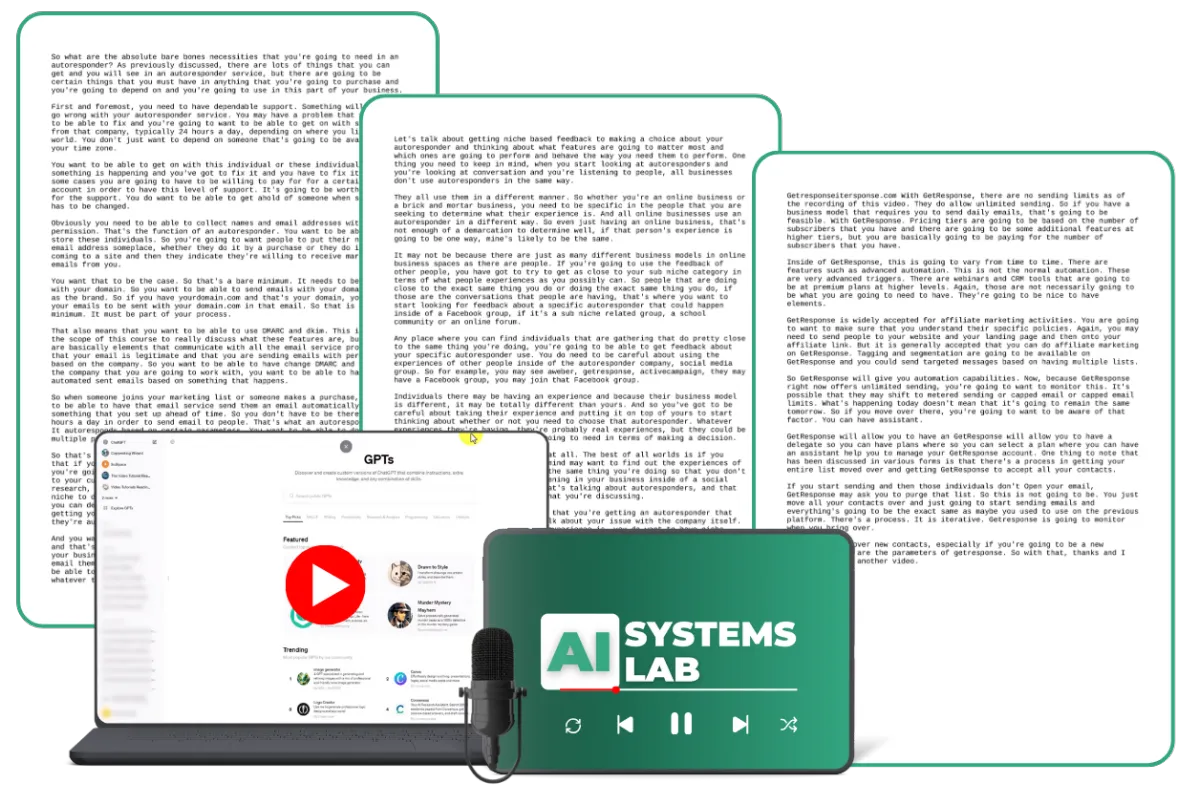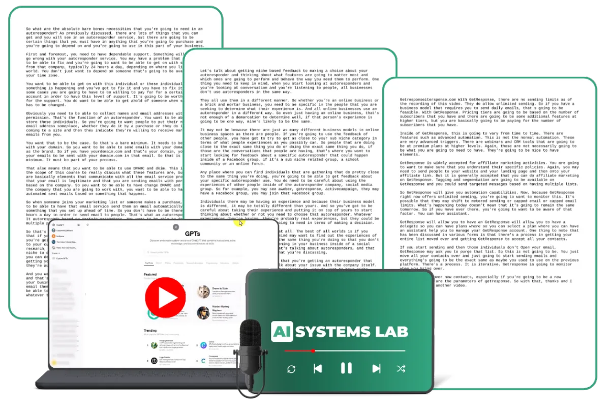 AI Systems Lab Core Training: A complete video and audio series that walks you through every step of planning, connecting, and automating your business systems using ChatGPT.